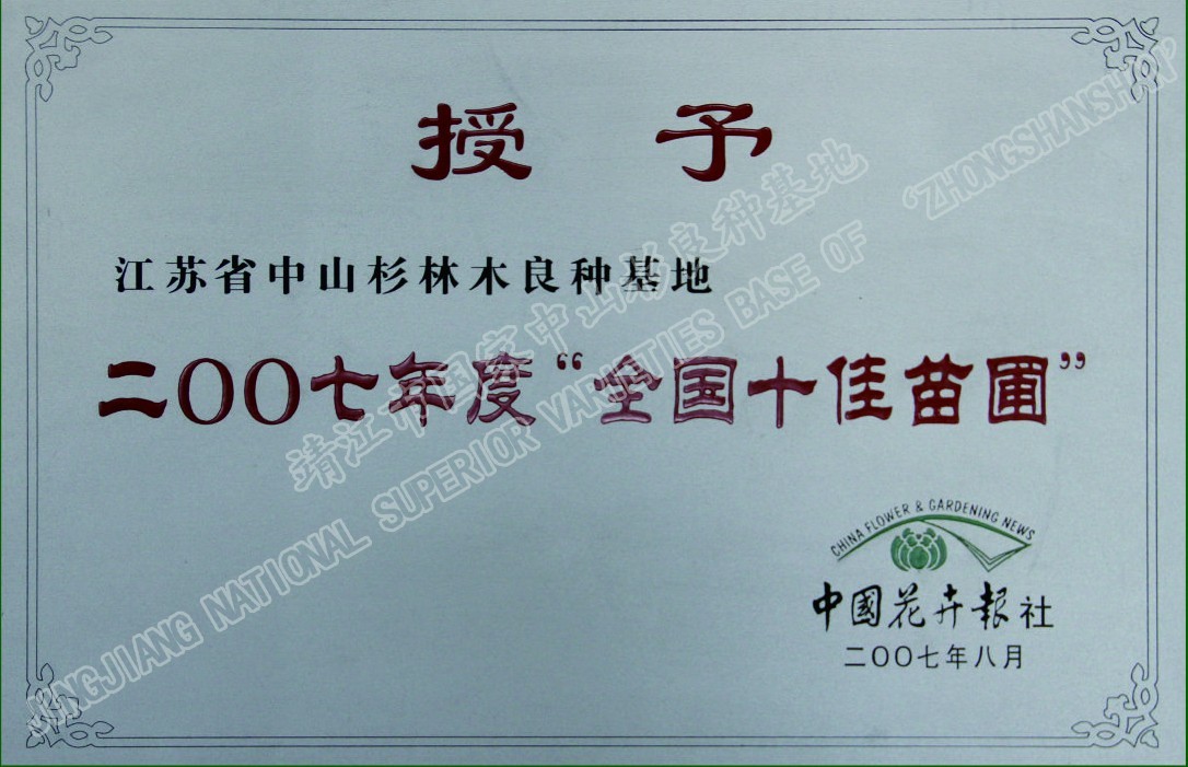 靖江市中山杉林木良種有限公司單位現(xiàn)有職工120人,其中中高級(jí)技術(shù)人員26人,初級(jí)技術(shù)人員45人,高級(jí)技工45多人,備有多功能灑水車、高空作業(yè)車、挖掘機(jī)、草坪噴播機(jī)等齊全的園林施工機(jī)械,年承接綠化工程100萬(wàn)平方米以上。公司自成立以來,參與了眾多省內(nèi)外綠化重點(diǎn)工程的建設(shè),先后完成江陰長(zhǎng)江公路大橋、潤(rùn)揚(yáng)大橋、南京三橋、蘇州吳中大道、揚(yáng)州西北線繞城、無(wú)錫沿江高速、無(wú)錫342省道、滬寧高速、泰高路、寧通高......